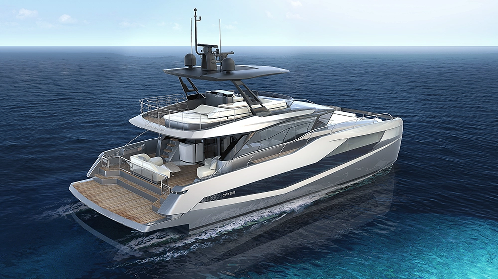 From a stylistic point of view, the CAT56 stands out for its sporty character that recalls the typical design of superyachts, elegant and sleek, echoing the DNA of Pininfarina and De Simoni Yacht Design.