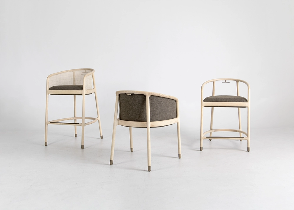 The Juliet Collection comprises three pieces: a dining chair, a counter stool, and a bar stool. Made from solid ash, the pieces are designed to age beautifully, acquiring a patina that tells a story of enduring love and quality craftsmanship. Available in natural ash, walnut stain, and black stain, with upholstered, caned, or open-back options, adding versatility to the collection to suit various design preferences and functional requirements.