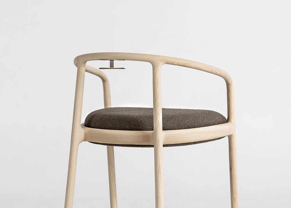 Juliet is ergonomically designed for comfort and boasts thoughtful practical features. Metal pulls and T-hooks discreetly mounted into the seat backs offer convenient solutions for accessibility to hang jackets and bags. These metal finishes and protective caps add sophistication and also serve functional purposes, safeguarding the pieces from potential damage with usage and cleaning.