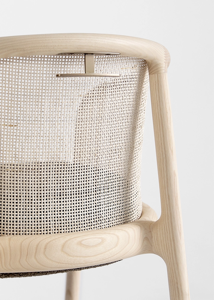 Hand-finished elements, such as the delicate caning, distinguish the collection and showcase the expert artisanal craftsmanship. The production process prioritizes collaborations with family-run shops, women-empowered factories, and suppliers in Italy to foster the preservation of traditional craftsmanship and support the local economy.