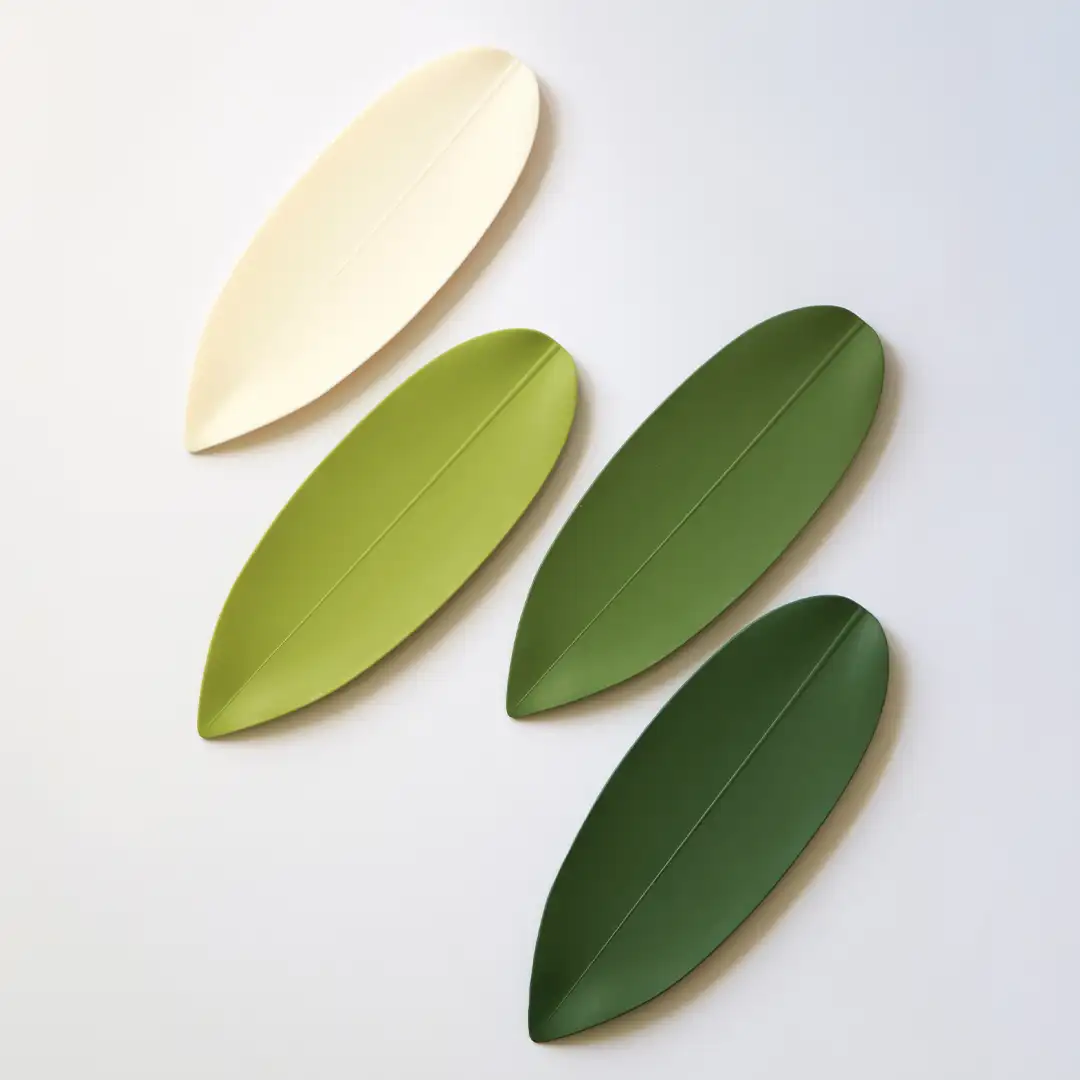 LeafDish began with a wish to bring nature as close as possible to the dining table. Its silicone form follows the long graceful line of a bamboo leaf, so a single set fills the table with the colour, grain, and quiet warmth of the forest.