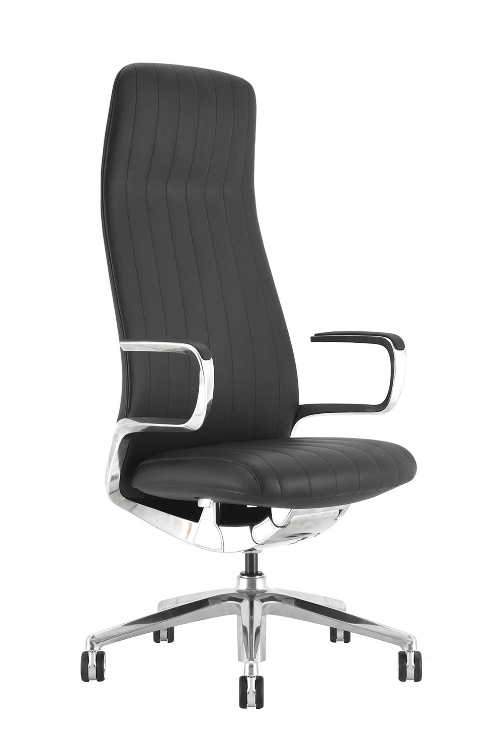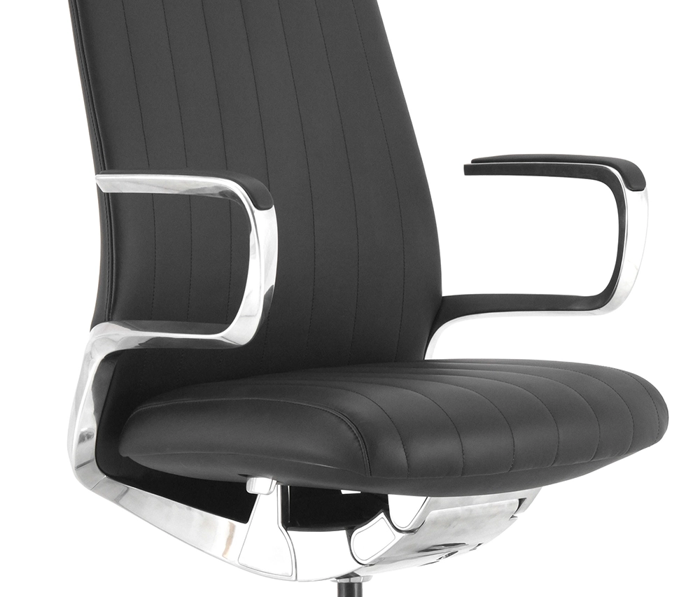 Lella is an executive chair that truly distinguishes itself in the market with its sinuous die-cast aluminum armrests and its unique vertical stitching running through the entire chair.