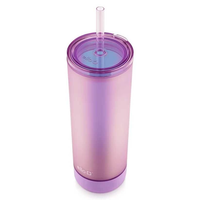 The Ello Monterey 24oz Insulated Double-Wall Plastic Tumbler features a soft boot that acts as a built-in coaster! Double wall plastic keeps drinks cooler longer. With a friction fit lid, Monterey is the perfect insulated tumbler for water, iced tea, iced coffee, or your favourite beverage.