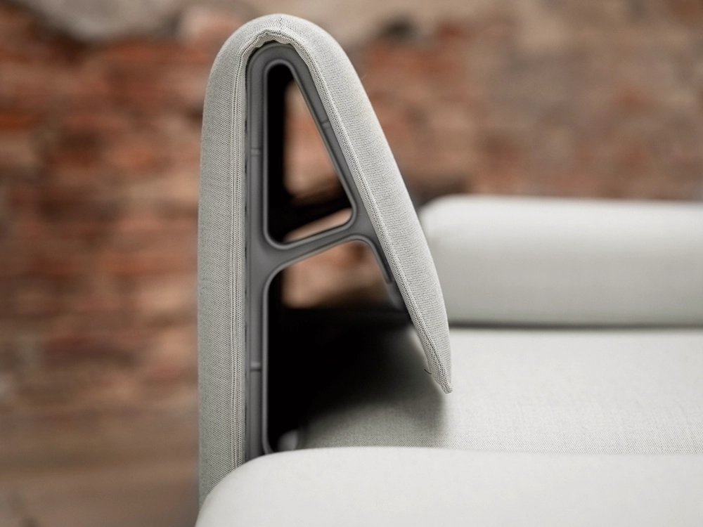 Enhancing this robust and adaptable framework is an innovative upholstery attachment method that requires no special tools, glue, or staples. The upholstery, featuring a sewn-in list, snaps onto the perforated aluminum sheets of the seat and backrest. This approach not only expands design possibilities with varied color combinations but also ensures easy removal and replacement of upholstery in case of wear or damage.