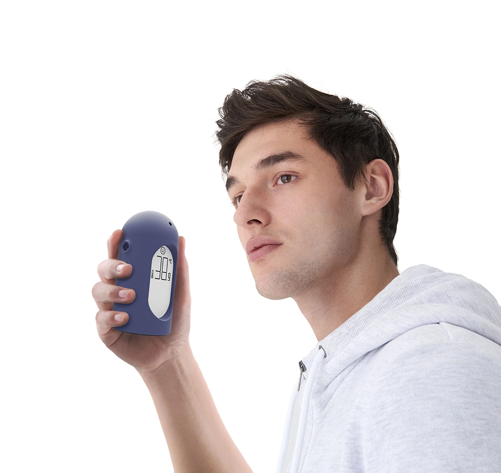 All human thermometers on the market have a very technical/medical aspect. This thermometer is the first on the market that integrates into the interior environment, becoming an decorative object. The thermometers on the market have the appearance of a gun, so if you want to check the temperature yourself, you have to bend your hand very awkwardly. This thermometer is very easy and natural to use, being the first of its kind on the market.