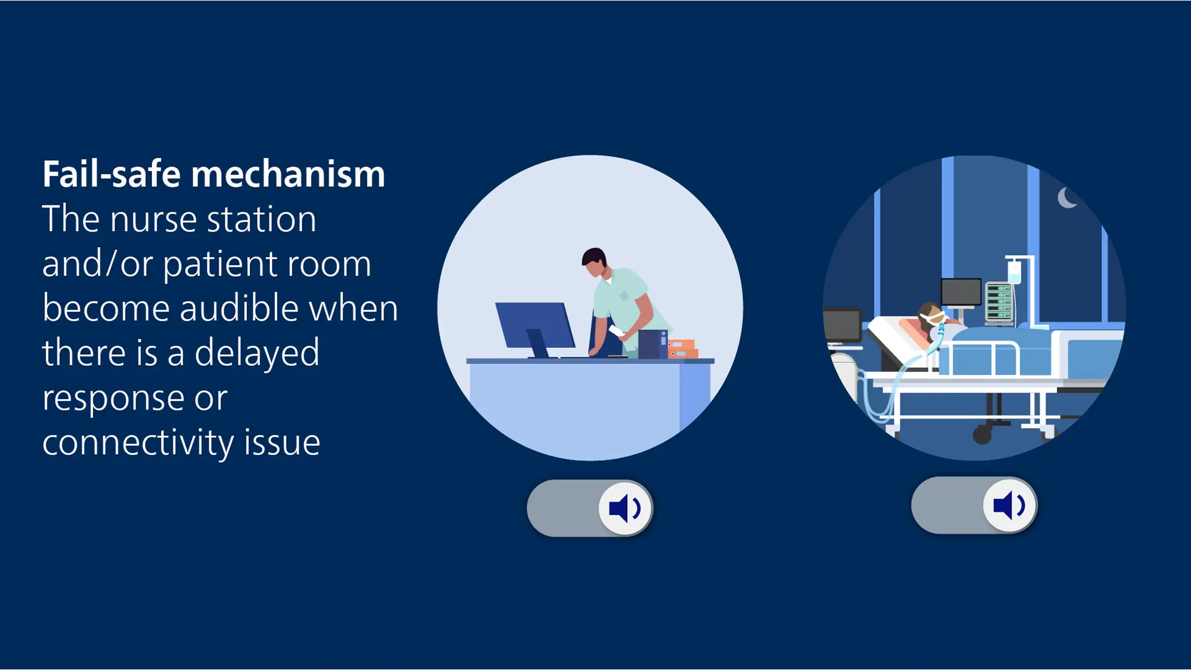 This optimisation of alarm systems is designed to enhance the work experience and productivity of nurses, with the ultimate goal of promoting a restful healing environment. This solution is not yet available for sale.